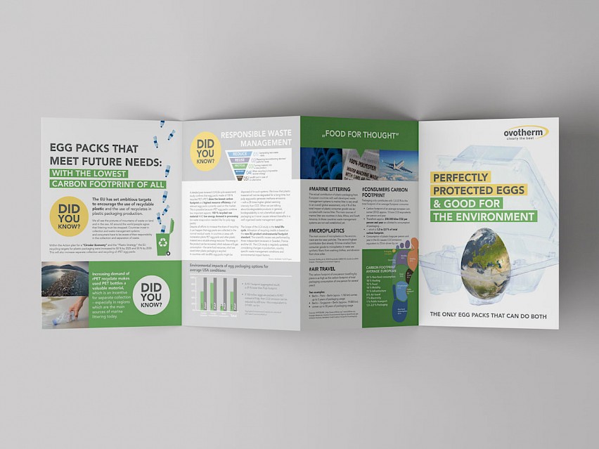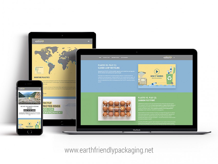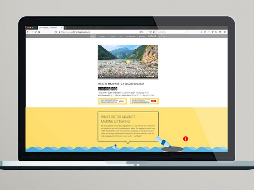 Entwicklung und Umsetzung von impactstarken Kommunikationsmaßnahmen, die den Hersteller von nachweisbar umweltfreudlichen (!) Kunststoff-Eierverpackungen im laufenden internationalen Diskurs ("Plastik versus Papier") auf B2B- und B2C-Ebene fundiert und einprägsam unterstützen. Konkret: Entwicklung und Produktion einer Animation, die nun in einem zweiten Schritt zu einer umfangreicheren Landingpage ausgebaut wurde (www.earthfriendlypackaging.net) | Weiters: mehrsprachige Folder auf Basis von Umweltstudien | Seit 2019