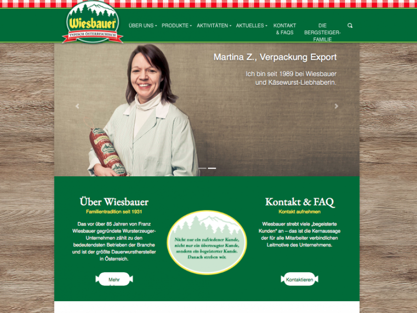 "Wursti 1 und 2": Idee und Produktion von Lasten-Velos für Samplingaktivitäten | Bauchladen- und Bürosampling (in Koop mit 88.6) | Klassische Image-Kampagne für OOH und TV mit integriertem Produkt-Lounge ('Bergsteiger Junior'); konzipiert als Modulsystem mit flexiblen Produkt-Allongen in unterschiedlichen Längen | Parallel dazu: Umsetzung einer komplett neuen Webseite (www.wiesbauer.at) und div. Marken-Landingpages | Seit 2018