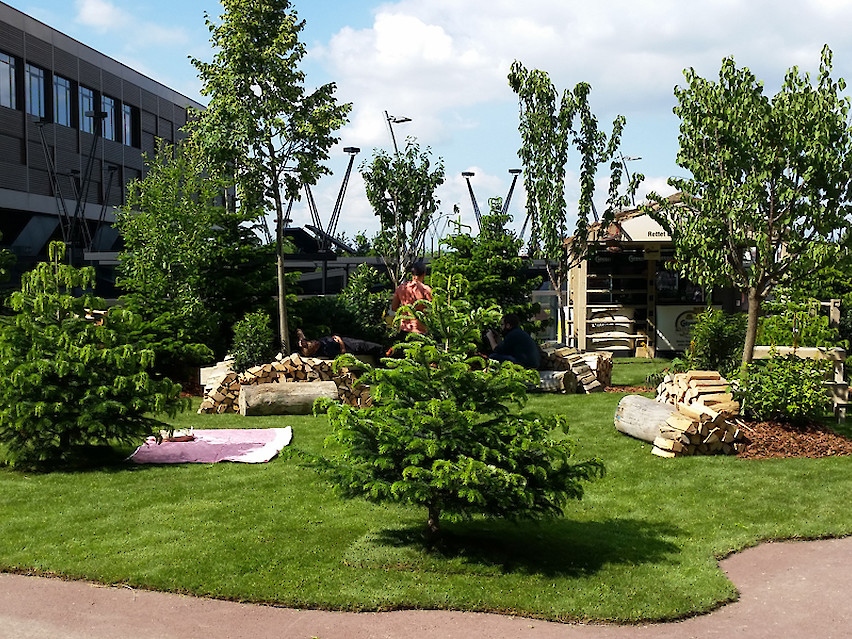 "Rettet die Mittagspause" – Event/Samplingaktion für Gösser Naturgold in Kooperation mit vi knallgrau. Over night errichtete Gösser-Area inmitten von Bürohochhäusern zwecks Verkostung von alkohlfreiem Bier | 1500 Pax