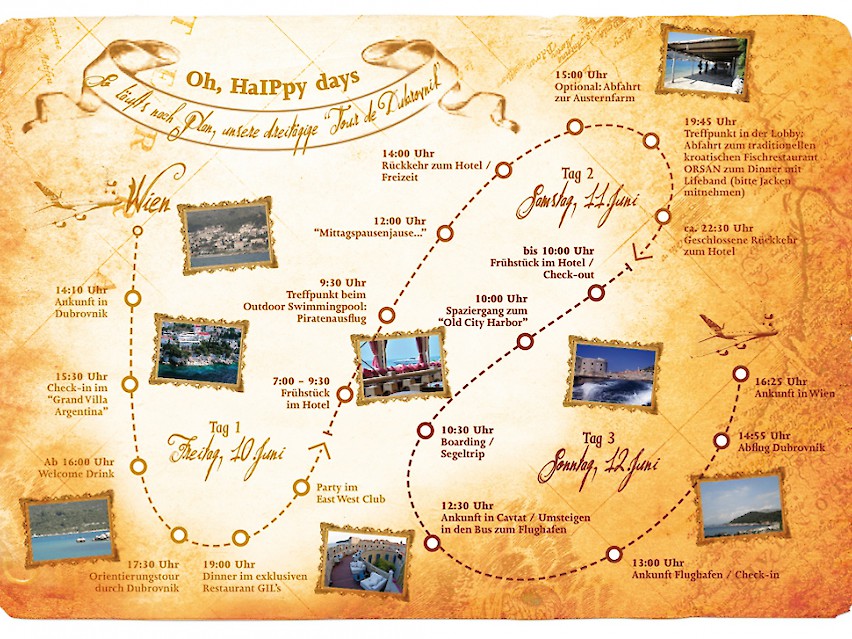 Maßgeschneiderte, nationale wie internationale Incentives & Mitarbeiter-Events für div. Kunden – oft auf Wunsch mit Motto, Detailausarbeitung und freudiger Gesamtbetreuung vor Ort | Pax von/bis