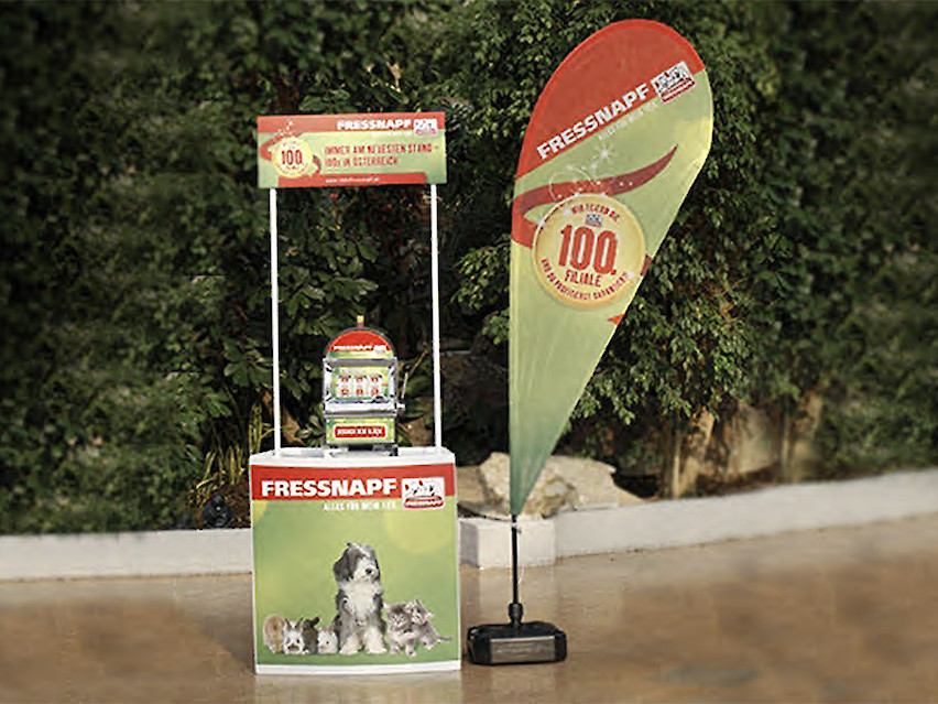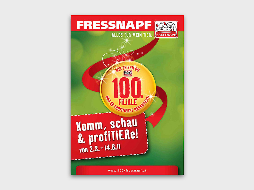 Multimediale Jubiläums-Kampagne mit dazu passender ö-weiter Roadshow (eigens gebrandeter Geländewagen), Guerilla-Marketing- und POS-Aktivitäten (ATL/BTL) –> Awareness, Kaufimpuls anlässlich Eröffnung der 100. Filiale
