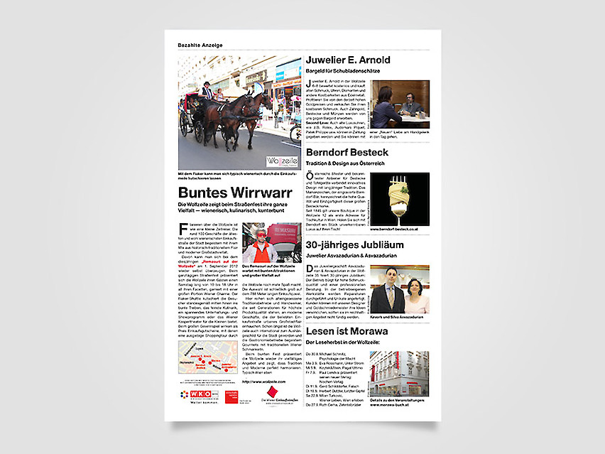 360° Identitätskonzept für die Wollzeile –> Erarbeiten des USP's "Wiens wienerischste Einkaufsstraße" –> Entwicklung und Umsetzung eines periodischen Straßenfestes "REMASURI"